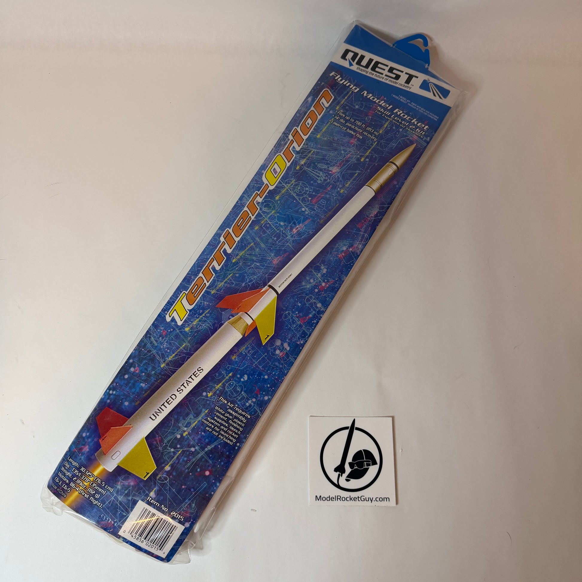 The Quest Terrier Orion model rocket kit is based on the US Navy surface-to-air missile that was converted to send payloads to near-space high altitudes. The Terrier Orion model rocket is single stage and would be a sleek addition to any model rocket fleet. Flights can exceed 1000 feet.